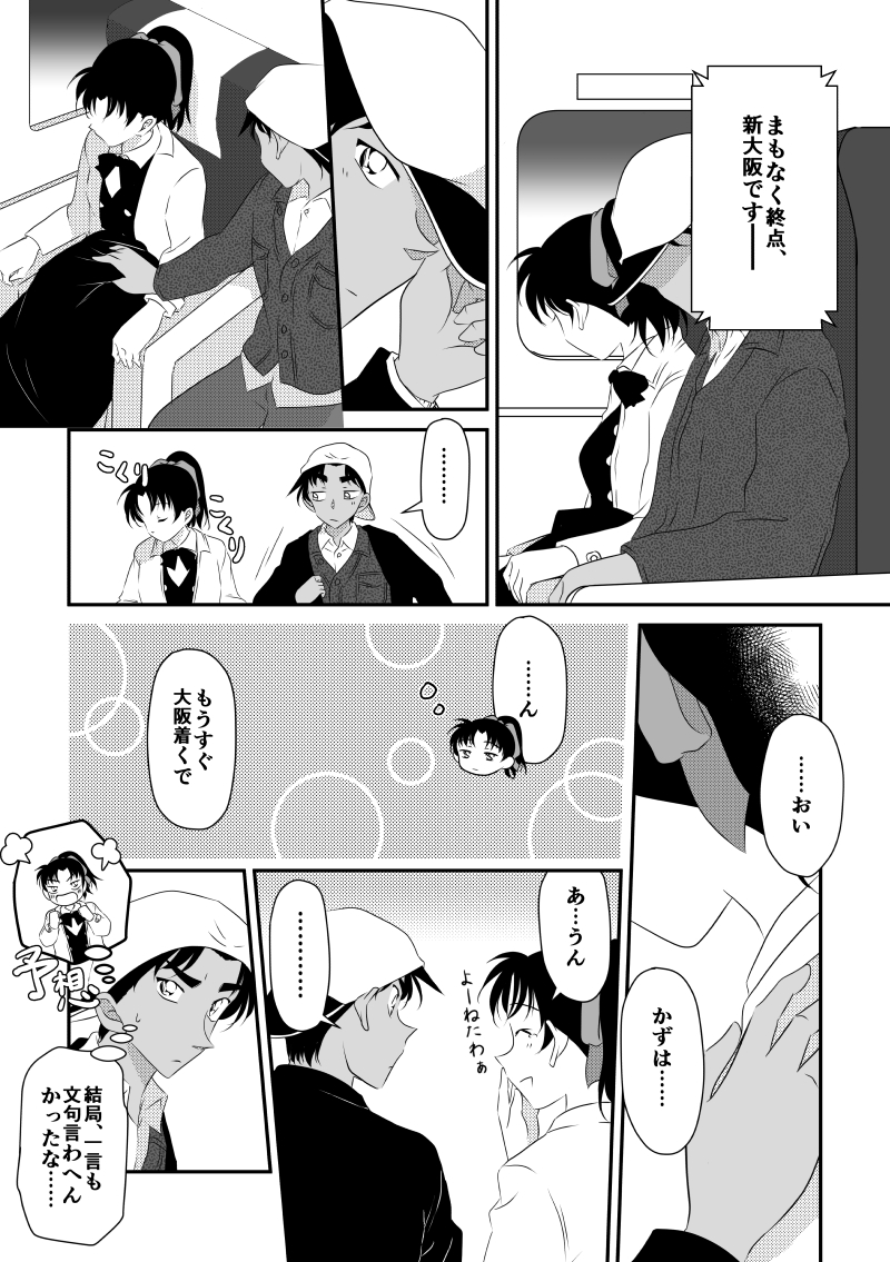 最初の新幹線で、眠る和葉ちゃんに自分の上着をかけてあげている平次がとても平次らしくて…泣いちゃいました。