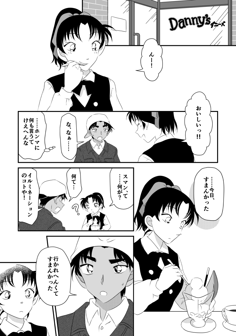 せっかく「残念がれ」なんて素敵ワード出したのにすーぐにスプーンの間接キスで誤魔化しちゃう平次も、誤魔化されたのを分かってるのにこーんな可愛い笑顔見せちゃう和葉ちゃんもこの両片思いのじれったい感じがものすごい好物です!!