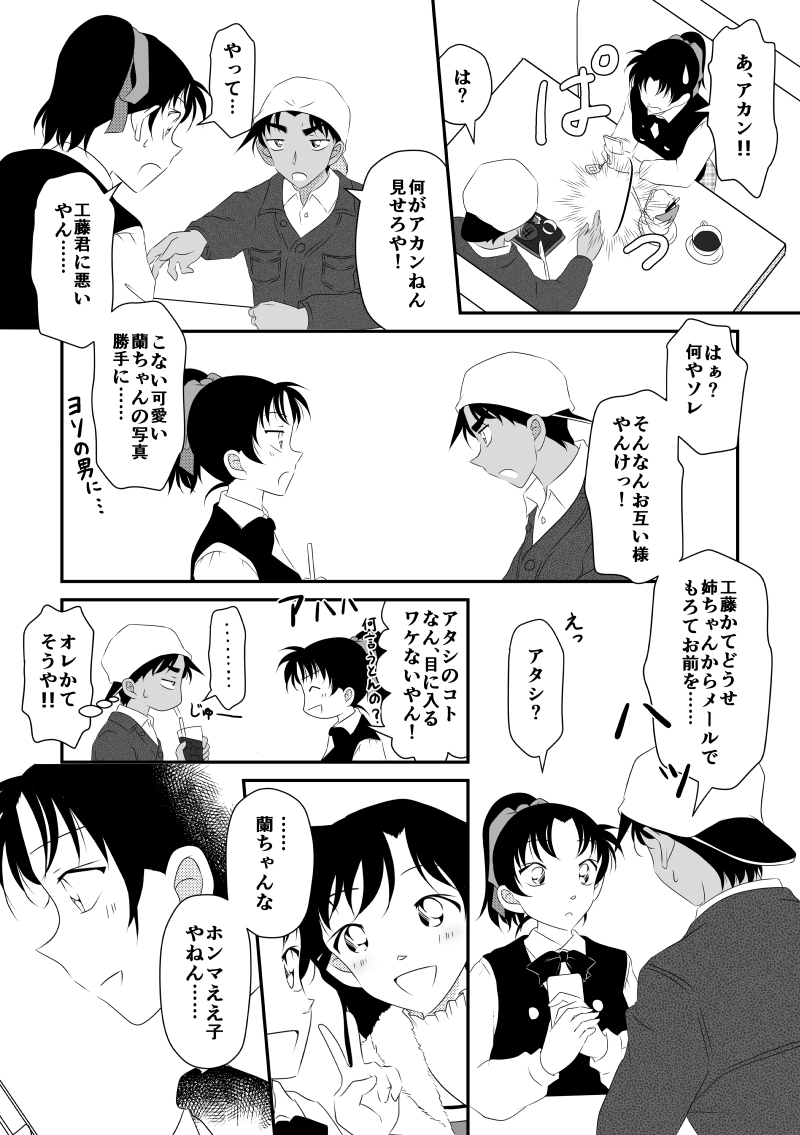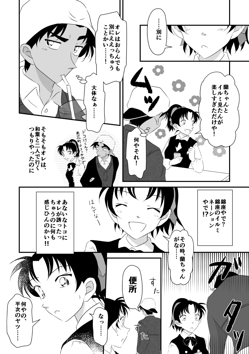 トイレから戻った平次は、和葉ちゃんの表情には気づかず、「まだ蘭ちゃんの写真を見ている」という事実にまたヤキモチ(?)をめらめらです。