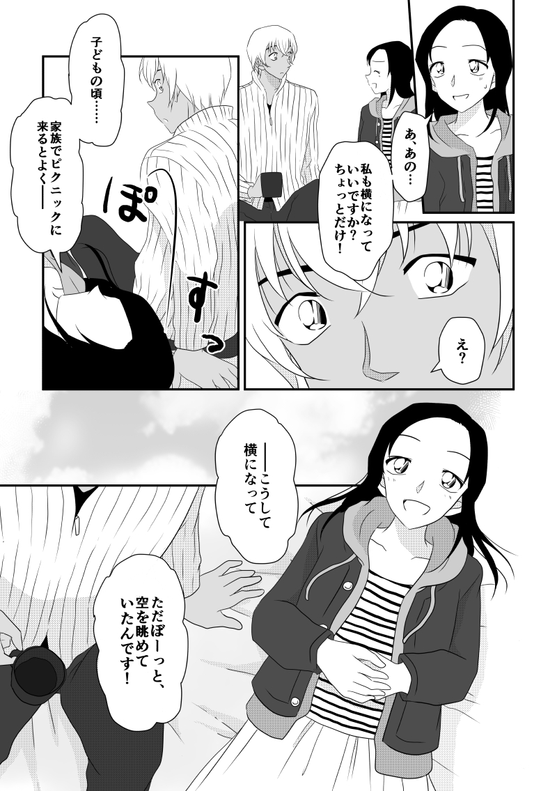 ぱんちさん!ありがとうございます!! わぁぁ、うれしいです。コメントありがとうございます✨ そうなんです…梓さん起きてます(*’ω’*) 安室さんの視線と気配めちゃくちゃしますしね! 眠気はどこかへいきました!笑 細かいポイントまで見てくださってうれしいです!! 今回わりと降谷さんのモノローグが多くて、好き勝手な妄想をいつもに増して描いているのですが、ぱんちさんに理想と言っていただけてうれしい…本当にうれしいです(´;ω;`) そうなんです、梓さんといることで気づかされた、なんでもない日常の尊さと言いますか…自分とは本当に別世界で生きている子だなぁと改めて思いつつ、でもそれでいいんだ、だからこそ自分は自分のやるべきことをやるんだ、と気持ちを新たにする降谷さんが描きたかったんです。 ぱんちさんの心臓ぎゅむぎゅむできたようでε-(´∀`*)ホッ ありがとうございます! とても嬉しかったです!!