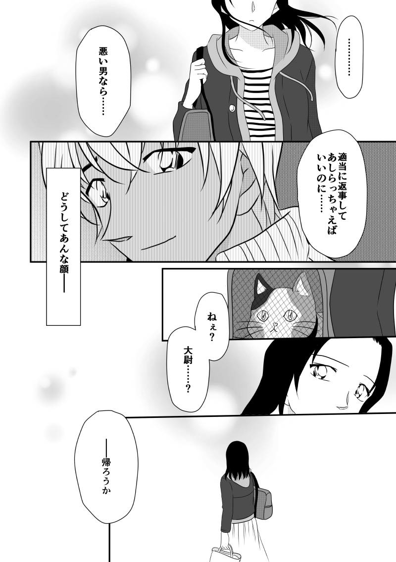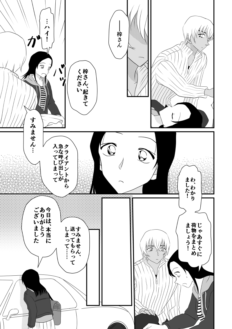 拝見させて頂きました…!ぱんちです Twitterでは文字数が足りなかったのでこちらに書かせて下さい! あ、梓さん起きてたーそうですよね横に安室さんがいたら眠れないですよね…! ちょっぴり頬が赤くなっているのと安室さんが屈んだときに口がきゅってなってるのが可愛らしいです…心がどきどきむずむずします! 彼女のような人達の日常を守りたいと思う降谷さん…どうしよう適切な言葉が見つからない…大好きです理想です… 梓さんがいたからこれまでゆっくり見てる暇もなかった守ってる日常を見る事が、体感する事が出来たんだ…自分のこと悪い男なんて言わないで降谷さん… そしてお別れの時安室さんの表情…それを見た梓さんの表情… 見事に心臓ぎゅむぎゅむですmimicoさん( ;∀;) 乱文失礼しました! 返信