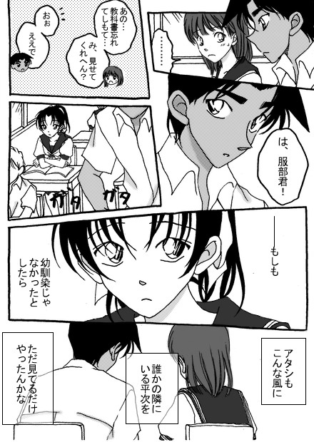 倖葉さん、コメントありがとうございます! 和葉ちゃんと平次以外はみんな二人は両想いって知っているのに…( ;∀;) 和葉ちゃんは、よく知らないよその人にはわりと強気だけど、身近であればあるほどよわきになっちゃうタイプかなーと思っていて、こんなお話に…和葉ちゃんは当事者なので、ほんとは傍観者じゃないんですけどね! 幼馴染という関係の切なさを描いてみたお話でした! コメントありがとうございました!