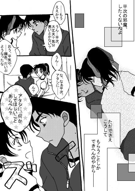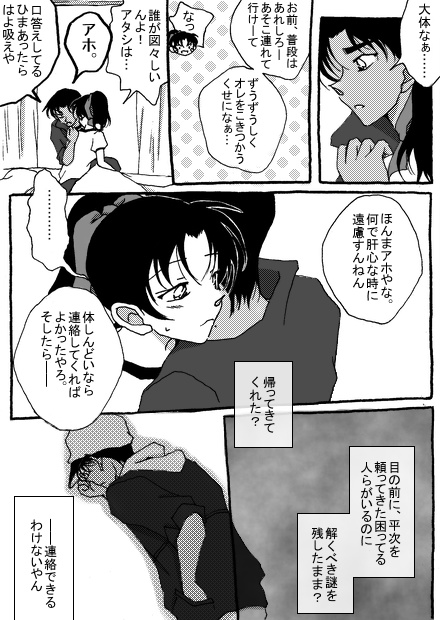 遠慮して少ししか吸わない和葉ちゃんに、どの程度必要か既に把握してる平次に、そりゃ和葉ちゃんも更に惚れてしまいますよね(^^)
