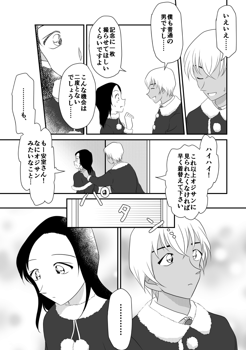 【あむあず】2017年クリスマス 公式クリスマスカードのサンタコスプレに触発されて描いたお話(全4P)安室×梓あむあずクリスマス Posted on 2017/10/222018/03/05 by mimico 関連