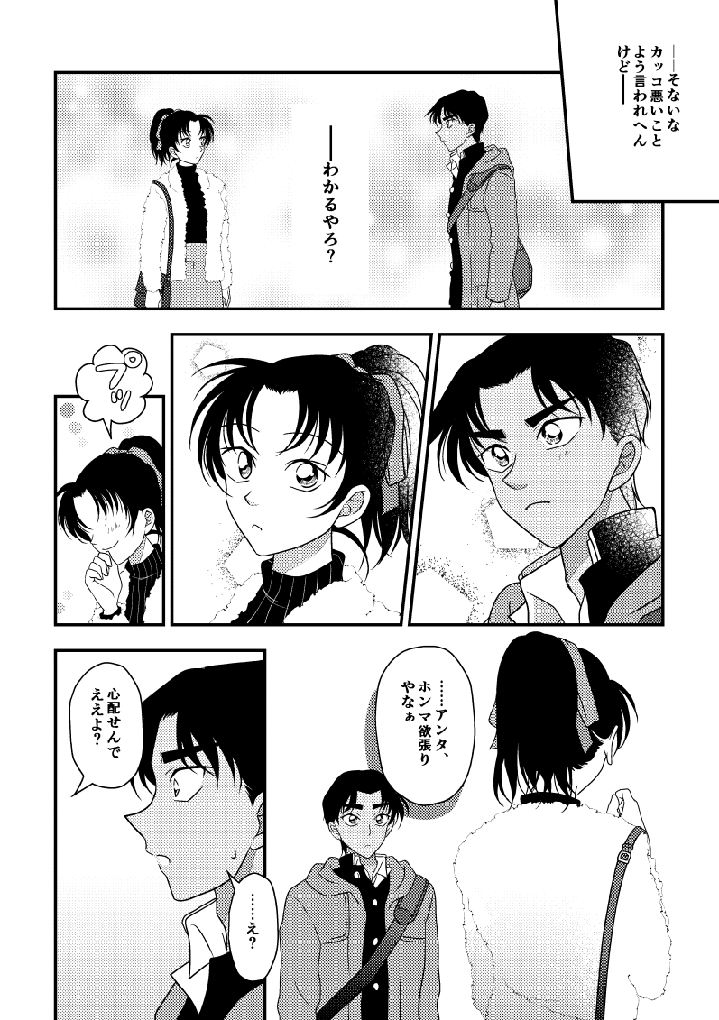 そーまさん、こんにちは!コメントありがとうございます! 今回は恋する平次はどんな顔をするだろう?とあれこれ妄想してみました! 今までで一番、平次の顔アップのコマをたくさん描いたかもしれません! 恋する平次はほんと可愛いなぁと思います(*^-^*) 最後の和葉ちゃんの表情にもありがとうございます! 二人とも独占欲強いところが可愛くて大好きです。 優しいお言葉もありがとうございます! そーまさんも、どうぞあたたかくして、元気にお過ごしくださいませ✨
